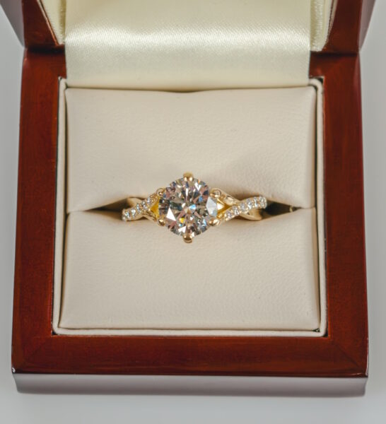 Mary has a lovely collection of jewellery, some is inherited favourites and some has been gifted to her by her husband. Due to the affordability of synthetic diamonds Mary wanted to have a dress ring to wear.