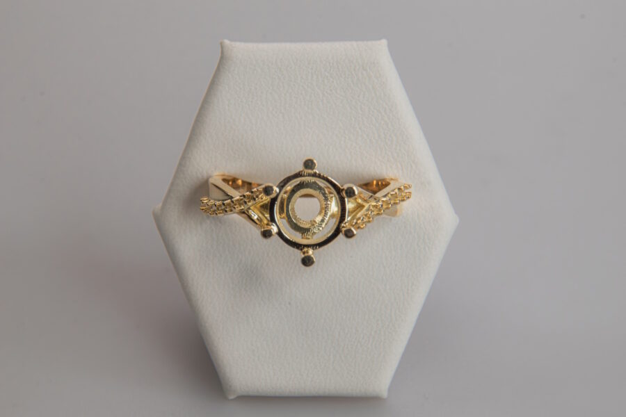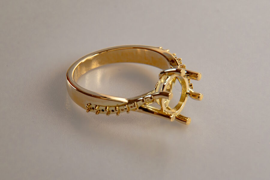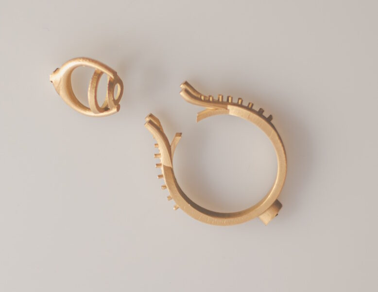 We asked Mary to look for images of jewellery that inspired her and from the images she gave us we created a ring. We used CAD to provide a image for her to look at. Once we had made minor adjustments her design was sent to be cast.