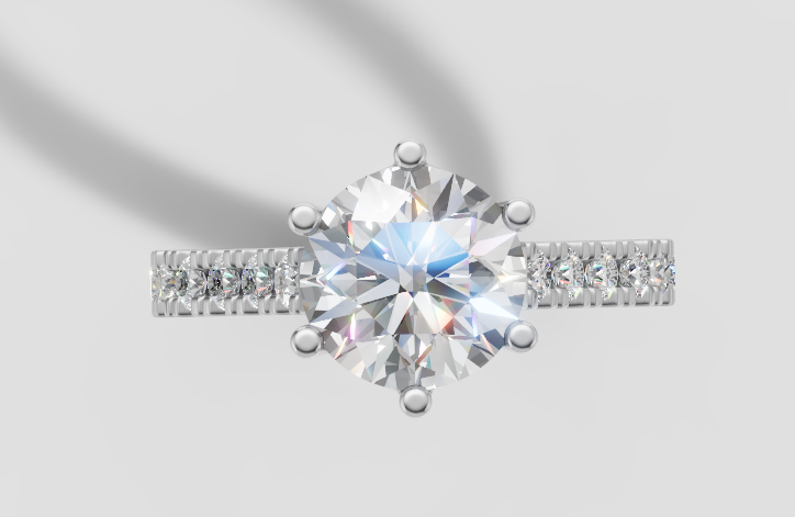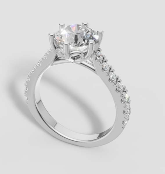 A client recently contacted us with a view to remodelling her engagement ring. This design is currently being developed in our workshop. It features heart-shaped gallery around the main stone and smaller diamonds in a half eternity band.