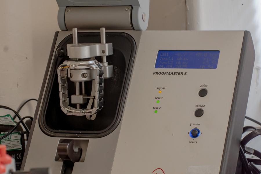 Once assembled, the watch is checked for timing accuracy.